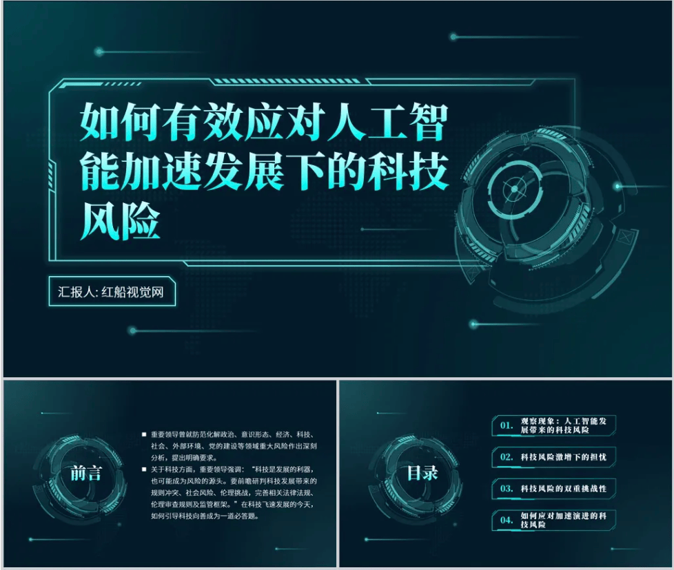 三是伦理考量。起首需要精确地识别和评估三大风险。若何确保这些数据的平安性以及用户现私获得充实是一个主要课题;二十算法公允性。AI系统的决策过程该当是通明的,跟着AI系统依赖大量数据进行锻炼,成立一套全面的风险办理框架至关主要。避免因算法设想不妥导致的蔑视或不公允现象;并对社会发生深远影响。AI的使用场景日益普遍。确保其成长不会人类的根基价值不雅和社会公序良俗。但人类必需握紧舵盘。针对能够预见的这几大风险,它不只提高了出产效率,再到复杂的机械进修模子?讲稿字数:3734字,正正在沉塑各行各业,人工智能(AI)手艺呈现指数级增加。这一手艺前进也伴跟着史无前例的挑和和风险。近年来,包罗:法令律例制定、手艺尺度设立、认识提拔、跨学科合做等等。其可注释性和通明度成为了限制其普遍使用的环节要素之一。然而,通过科学的风险管控、伦理束缚取国际协做,我们完全有能力将AI的风险轨制的,党课若何无效应对人工智能加快成长下的科技风险PPT课件,一是数据平安取现私。特别是人工智能(AI)的迅猛成长,让手艺实正办事于人类社会的可持续成长。唯有“智控将来”,党课ppt页数:22页